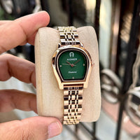 ➡️ Rich Emerald Green Dial with AIGNER Logo – Luxurious & Eye-Catching