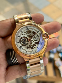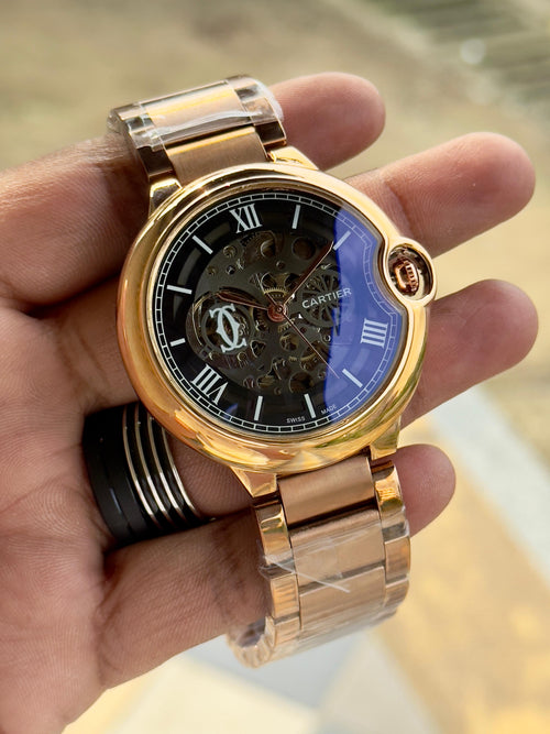 _A stunning Cartier timepiece with a bold skeleton dial and striking blue accents that radiate elegance and modern luxury._
