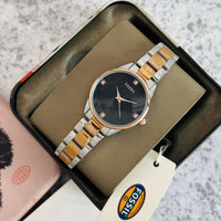 *Features*: Powered by original Quartz machinery, Stainless-steel Rosegold, Rose two-tone, polished round case with a Rosegold bezel with minute markings and Rosegold,Rose Two-Tone&Sliver band Fossil Strap mineral crystal glass on dial fastened by a push-button deployment clasp installed system